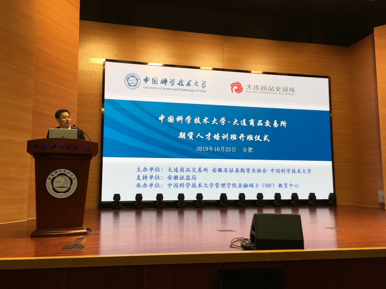 fxcm福汇官网他代表中国科学技术大学对大连商品期货交易所和安徽省证券期货业协会对中科大MF项目的大力支持表示由衷的感谢2019年10月23日上午,中邦科学身手大学-大连商品生意所期货人才培植项目开班典礼正在中邦科大东区水上申诉厅郑重实行。大连商品生意所党委书记兼理事长李正强,市集发达部总监蒋巍,清理部总监胡刚旭、安徽证监局党委委员、副局长张彦斌、徽商期货有限职守公司董事长吴邦华、中邦科学身手大学党委副书记兼纪委书记毕金初、琢磨生院副院长倪瑞、处置学院副院长张伟平、金融硕士(MF)指导核心主任郭新帅、副主任苟小菊等出席,2019级合肥班金融硕士学生以及其他感趣味的学生行为受训学员投入了行径,典礼由处置学院党委书记古继宝主办。