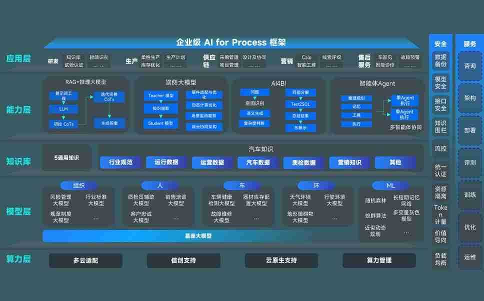 端到端的一站式AI工作空间深度融合了从企业战略规划到日常经营的全流程业务板块,,定向解决车企内部领域多、、、部门多、、链条长、、、、场景碎片化等难题,,支持车企快速构建以AI为核心的生产力写作体系,,实现任务执行与AI能力的无缝集成与交互