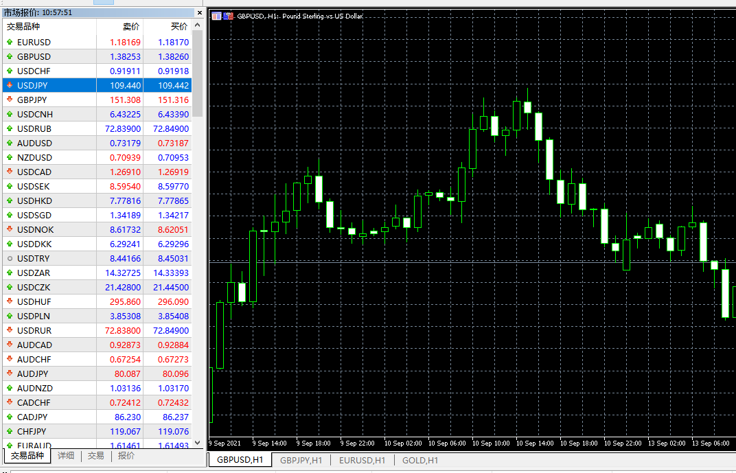 5、图外。如一下GBPUSD(英镑兑美元),平台中的图外有各式筑立, 于是贸易员可依照一面须要定制它们。每幅图外可能显示 21 个工夫帧, 从一分钟 (M1) 到一个月 (MN1)。