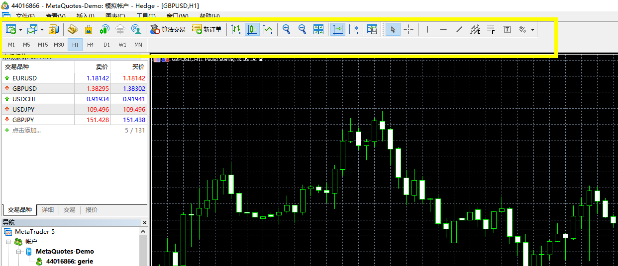 具体的可以把每个菜单里面的内容打开看看;!中文版mt43、主菜单。截图黄框处,主菜单蕴涵贸易平台内简直总共的夂箢和效用。它可为图外操作, 阐明器材, 平台筑立和其它效用供给拜访。主菜单由以下项目构成::文献,查看, 插入, 图外, 器材, 窗口, 助助。的确的可能把每个菜单内中的实质翻开看看;